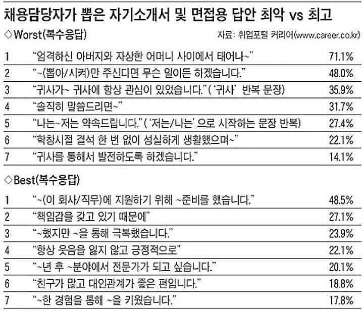 면접 1분 자기소개 예시 : 짜임새 있게 말하기